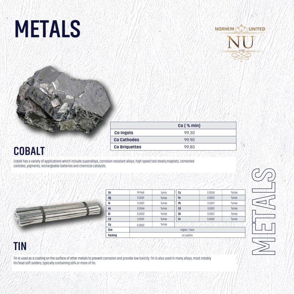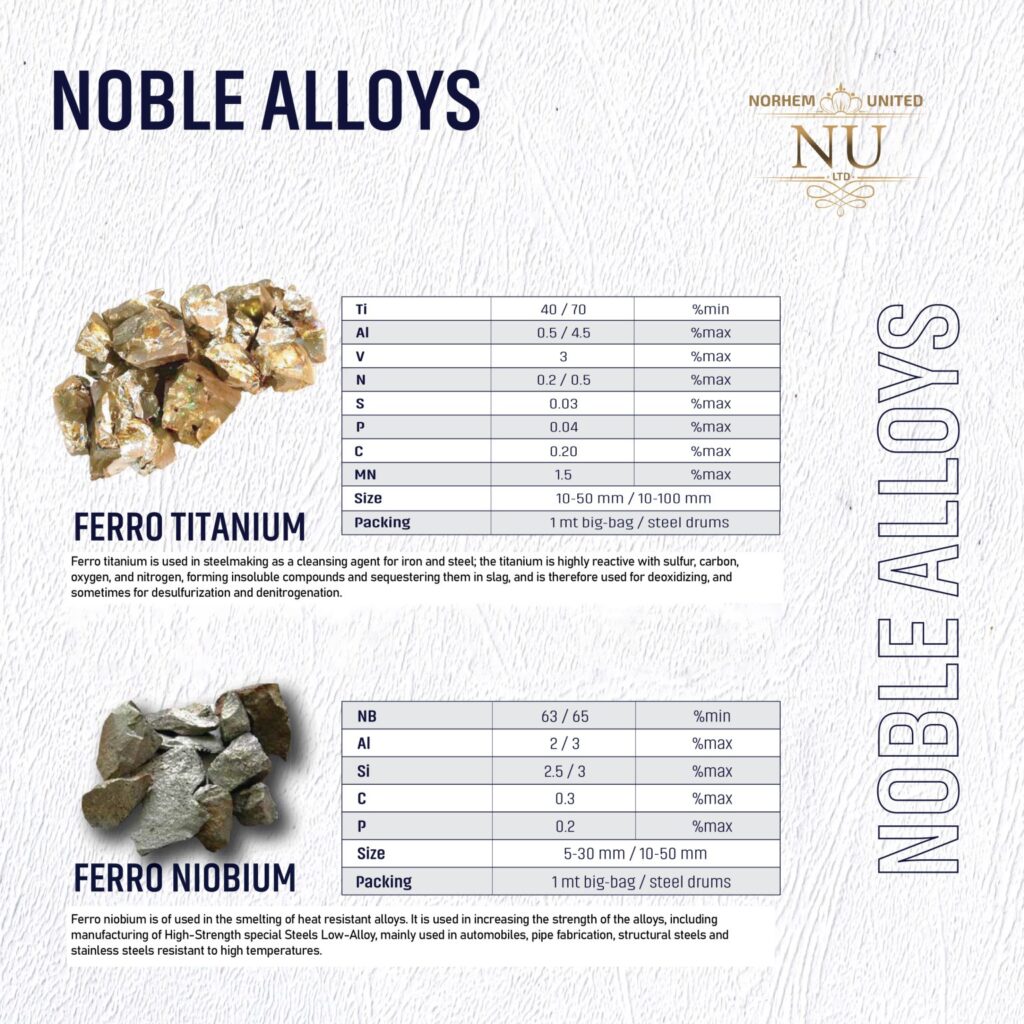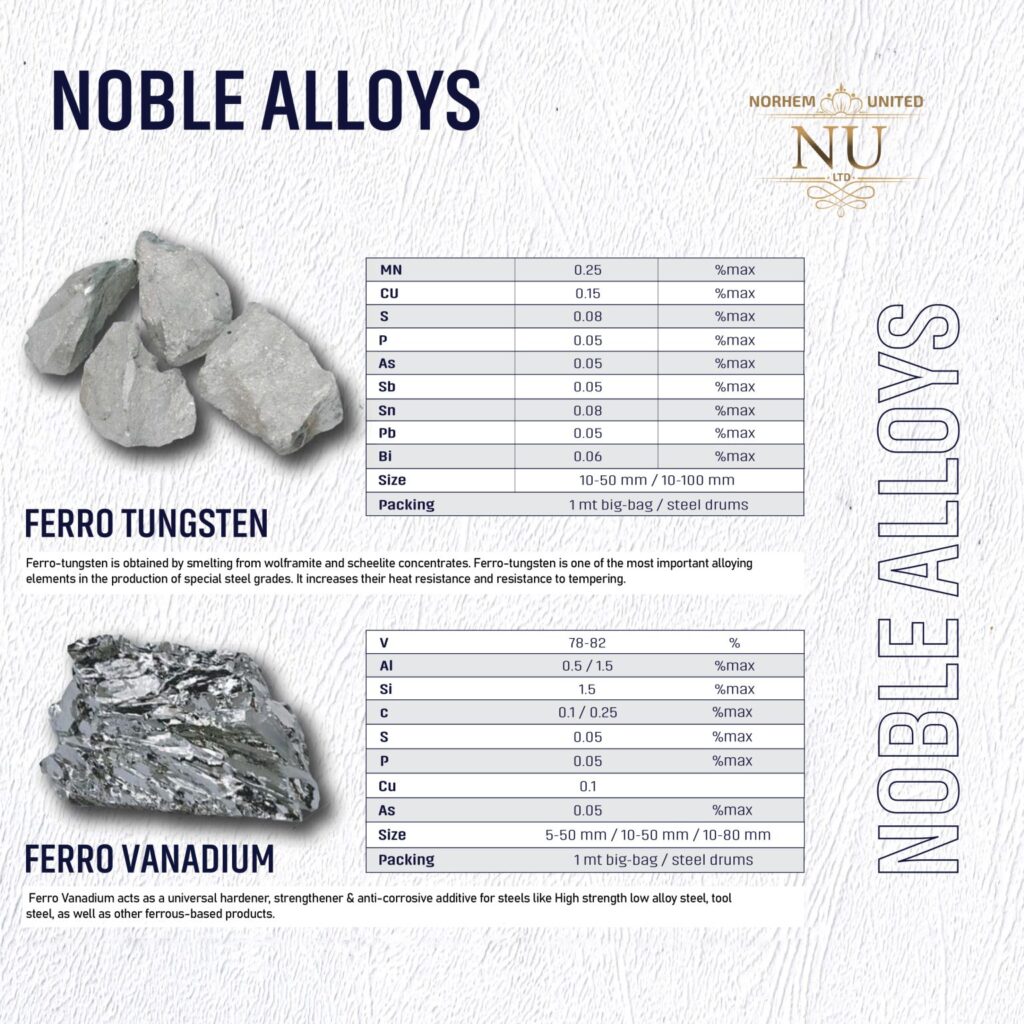 • High-performance metals for aerospace and superalloy applications: Co, Cr, Mo, W, Re, NbNi, VAl