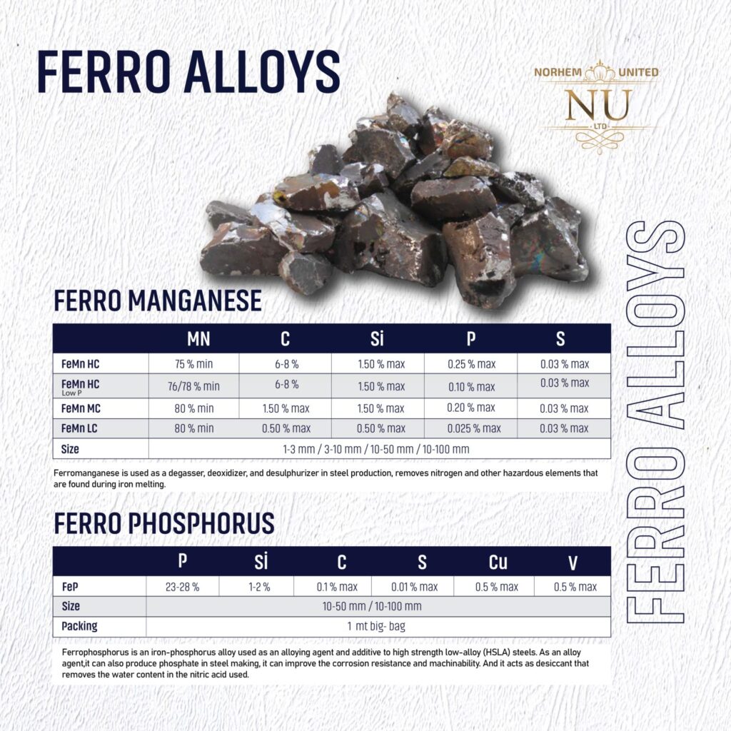 • Stainless and special steel ingredients: Ni, Sn, FeNi, noble ferroalloys, Mn